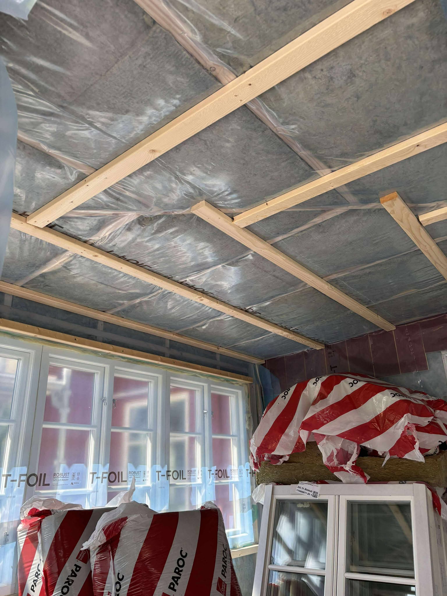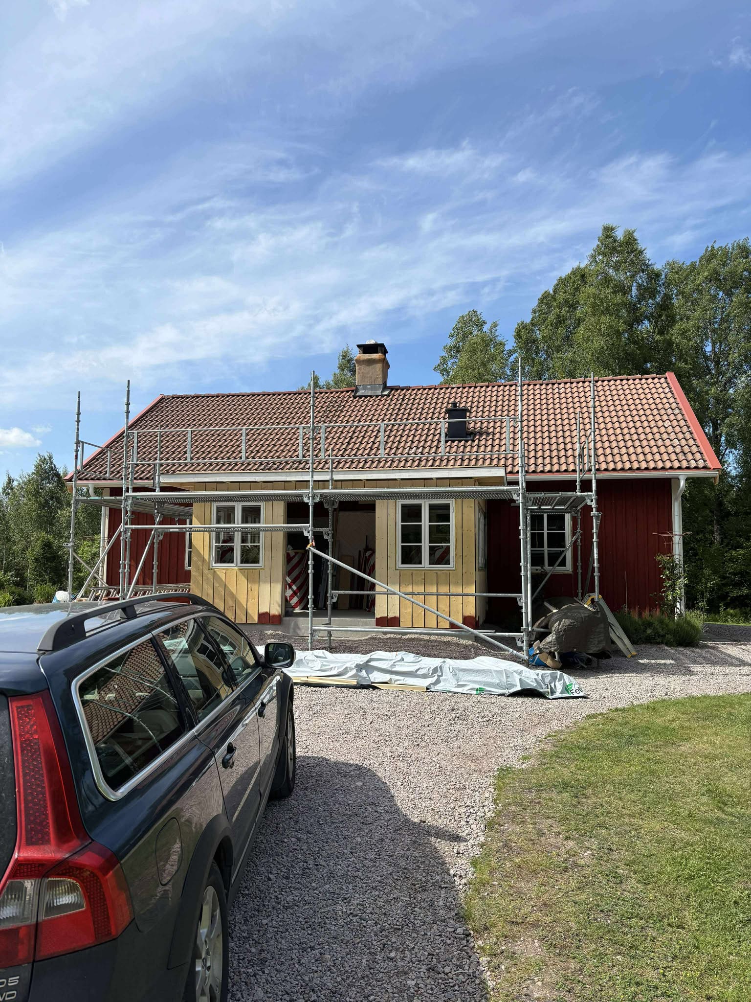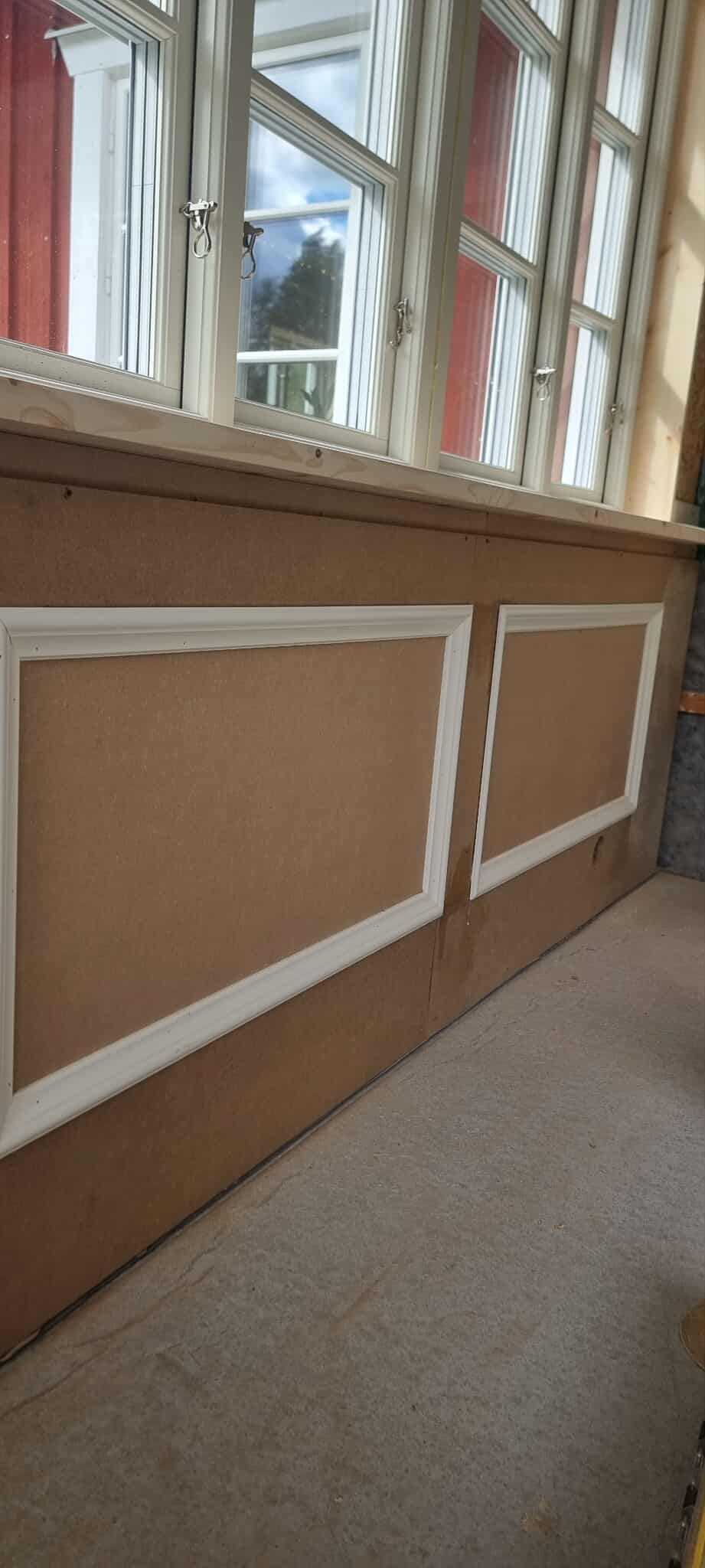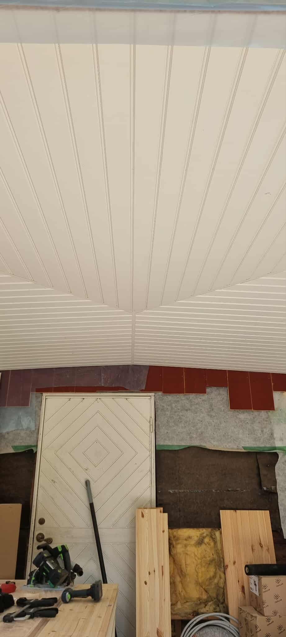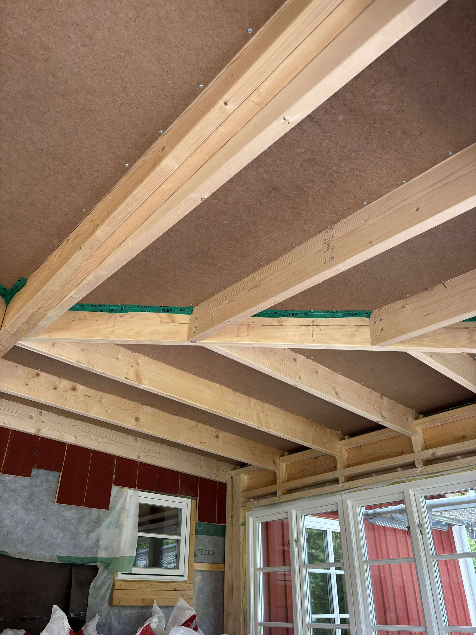 Glasveranda 20kvm.Markarbete & gjutning av grund.Resning av stomme, ställningsbygge. Brädfodring.Isolering, innerväggar, el, tak, panel, spegelpanel.Fönster och pardörr. Trappa.Klinker.